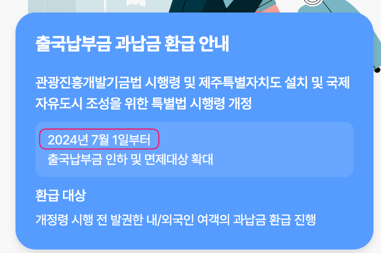 2024년 7월 1일부로 관광진흥개발기금법 시행령제주특별자치도 특별법 시행령이 개정되면서, 출국납부금 금액이 조정됐어요. 덕분에 이전 기준으로 항공권을 구매한 분들 중 일부가 과납한 금액을 돌려받을 수 있게 된 거예요.