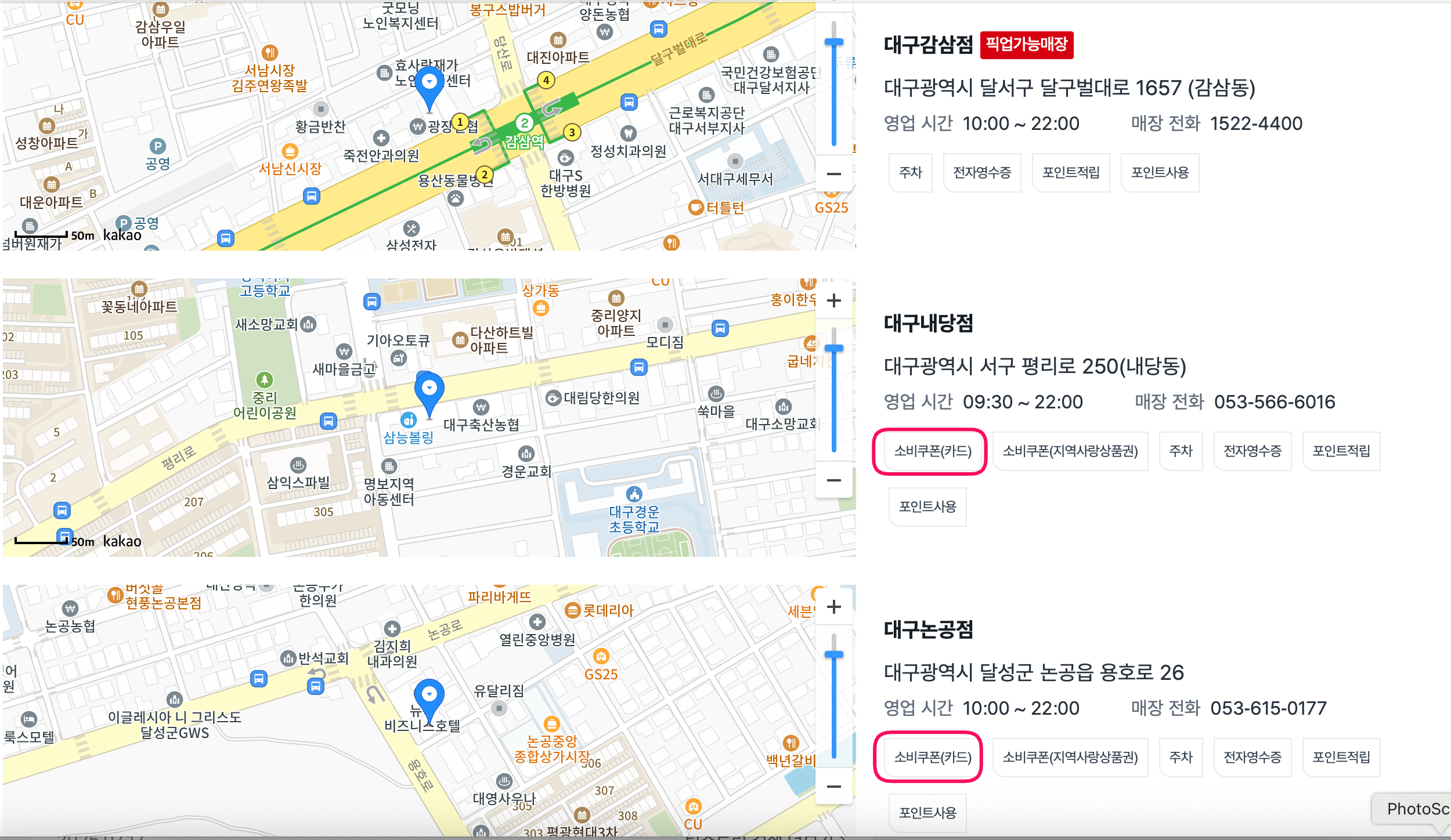 - 홈페이지 매장찾기 또는 전화번호, 입구 안내문 등을 통해 사전 확인 필수.